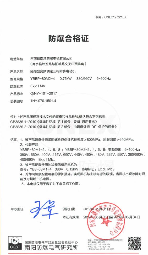 YBBP防爆电机防爆合格证