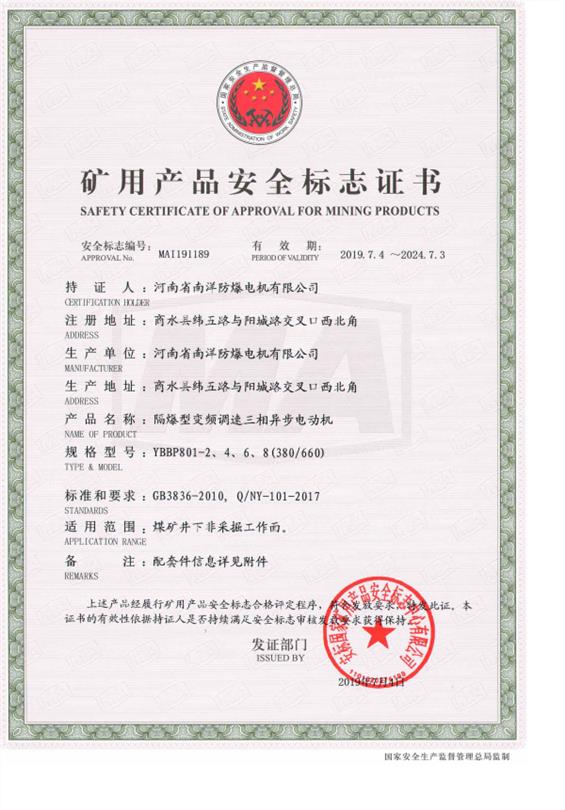 YBBP防爆电机煤安证