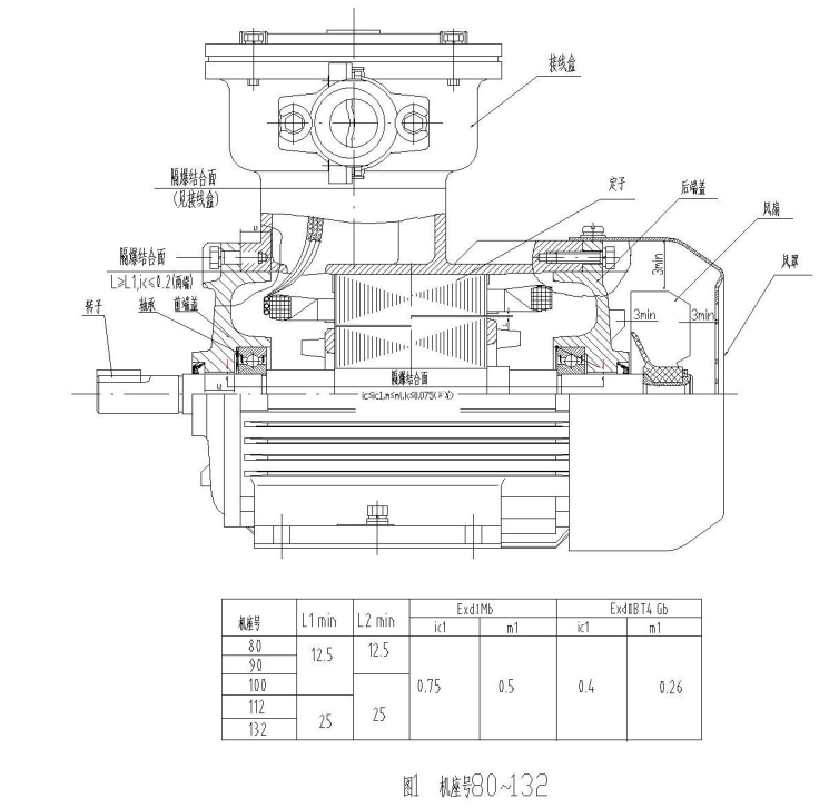 本系列电动机主体结构见图 1.2, 接线盒结构见图 3.4.